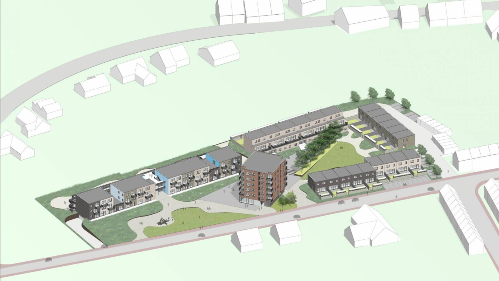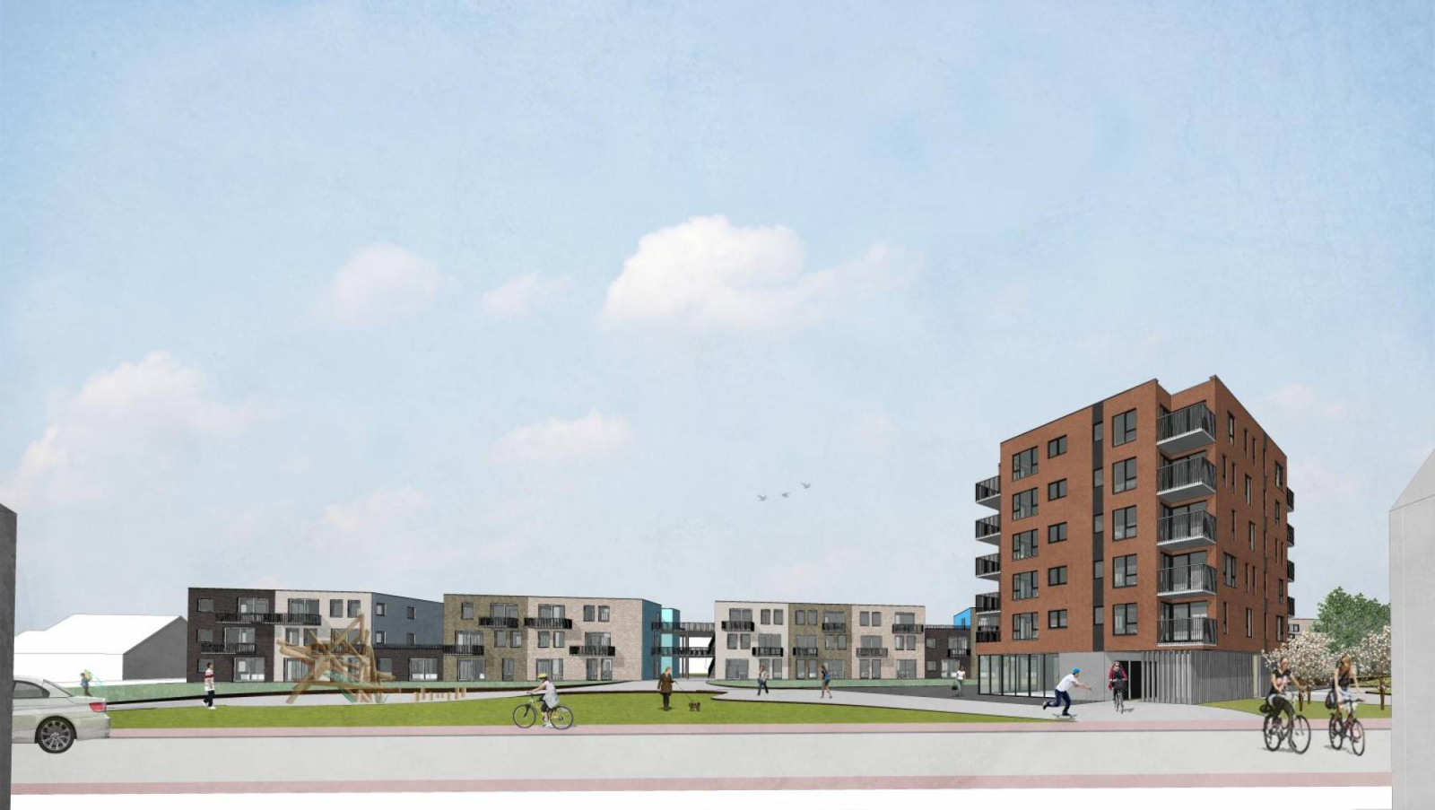 Gewonnen wedstrijdontwerp van sociale woningmaatschappij 'De Nieuwe Haard Ronse'.