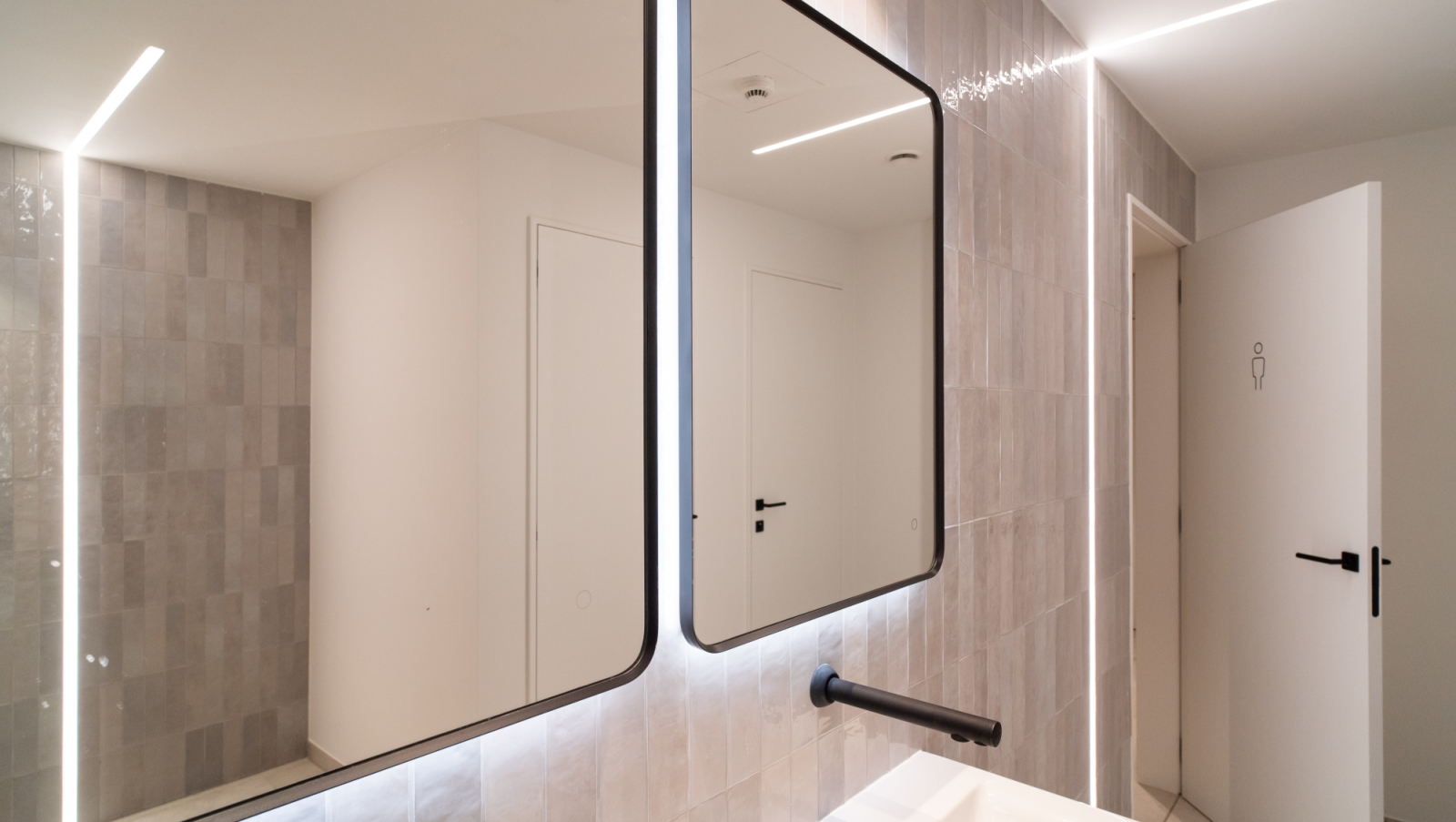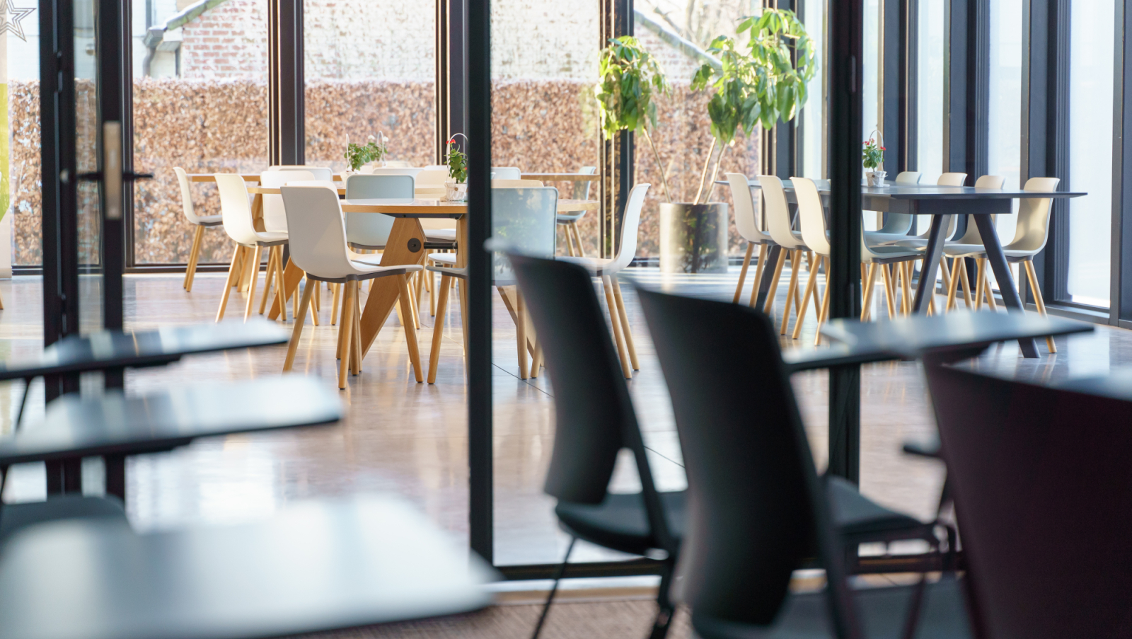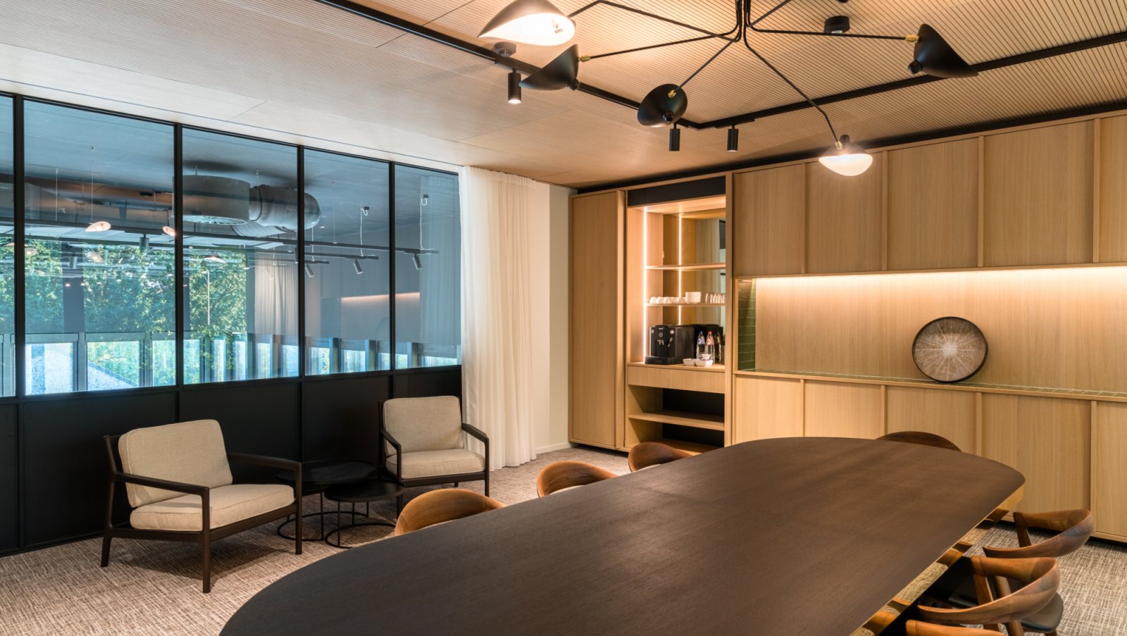 De strakke industriële look van het gebouw vormt samen met het cosy interieur een uitgelezen balans qua look & feel.