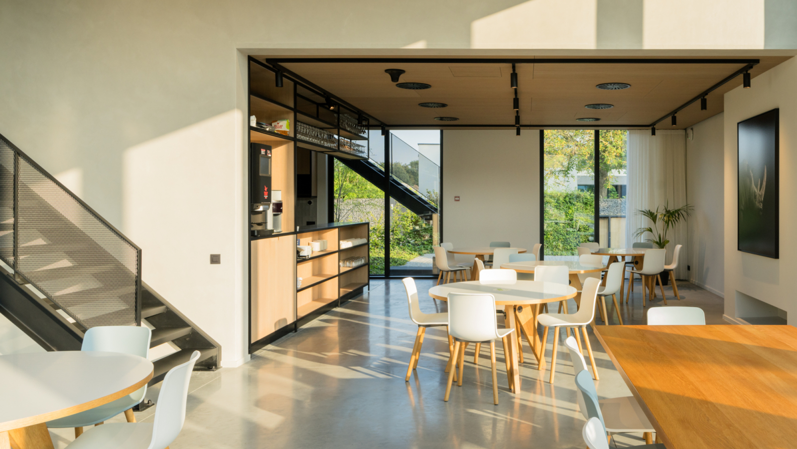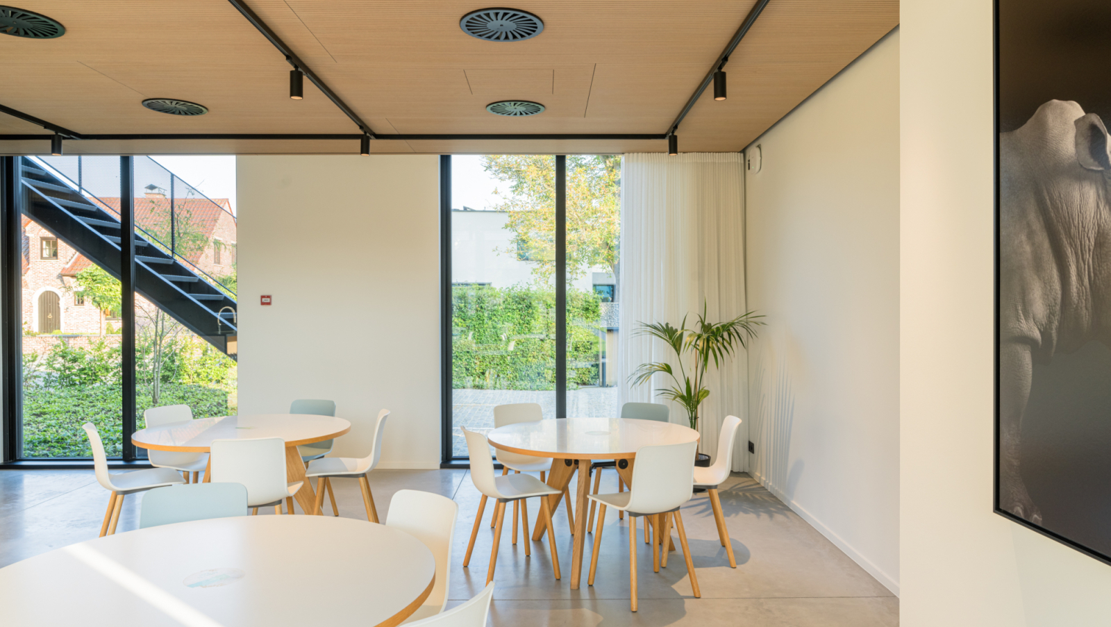Een tijdje terug gaven we het VPK-hoofdkantoor nieuw leven. Er verrees een nieuw Paviljoen dat plaats geeft aan een polyvalente ruimte voor lezingen, een lichtrijke ontvangst- en lunchruimte, een vergaderruimte op verdieping en een appartement voor expats.